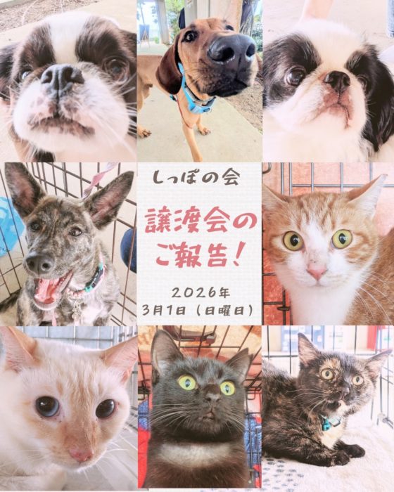 保護犬・保護猫と新しい飼い主さんを繋ぐ譲渡会を、毎月第一日曜日に開催しています。寄付・物資の受付、ボランティアの受付等も行っております。