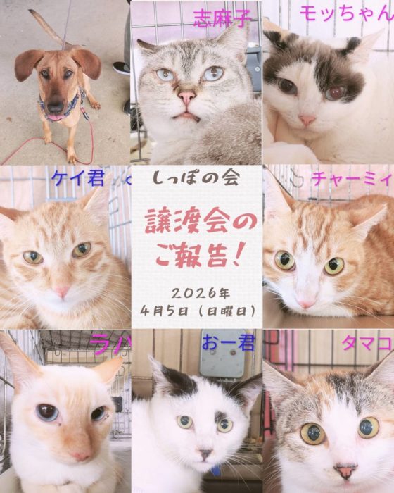当団体は、個人ボランティアの集まりの為、犬・猫の引き取りはしておりませんが、新しい飼い主さんに繋がるお手伝いをさせて頂いてます。