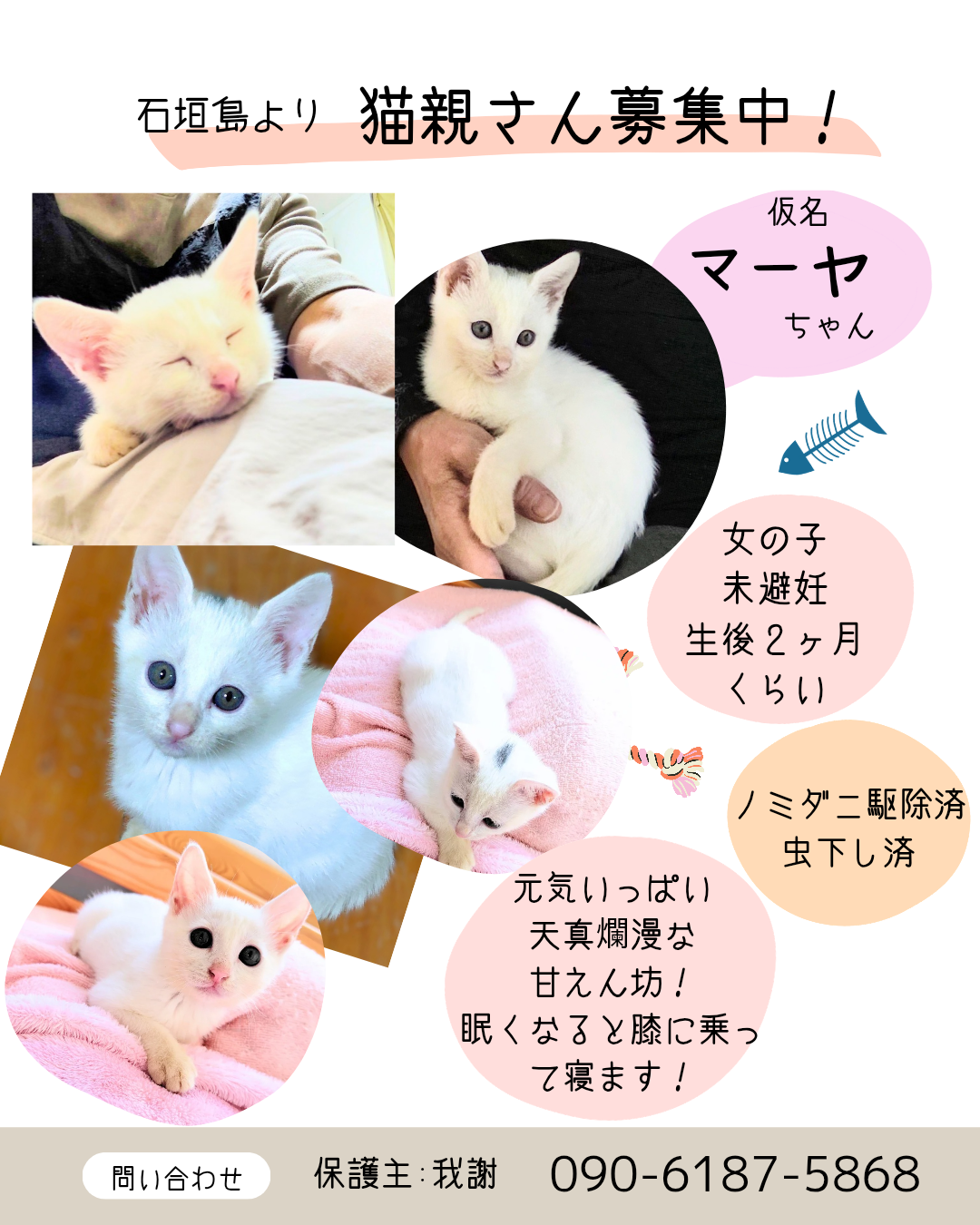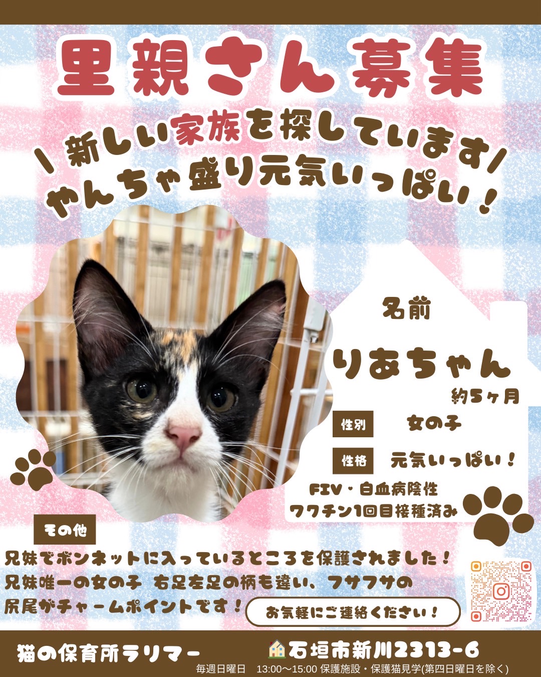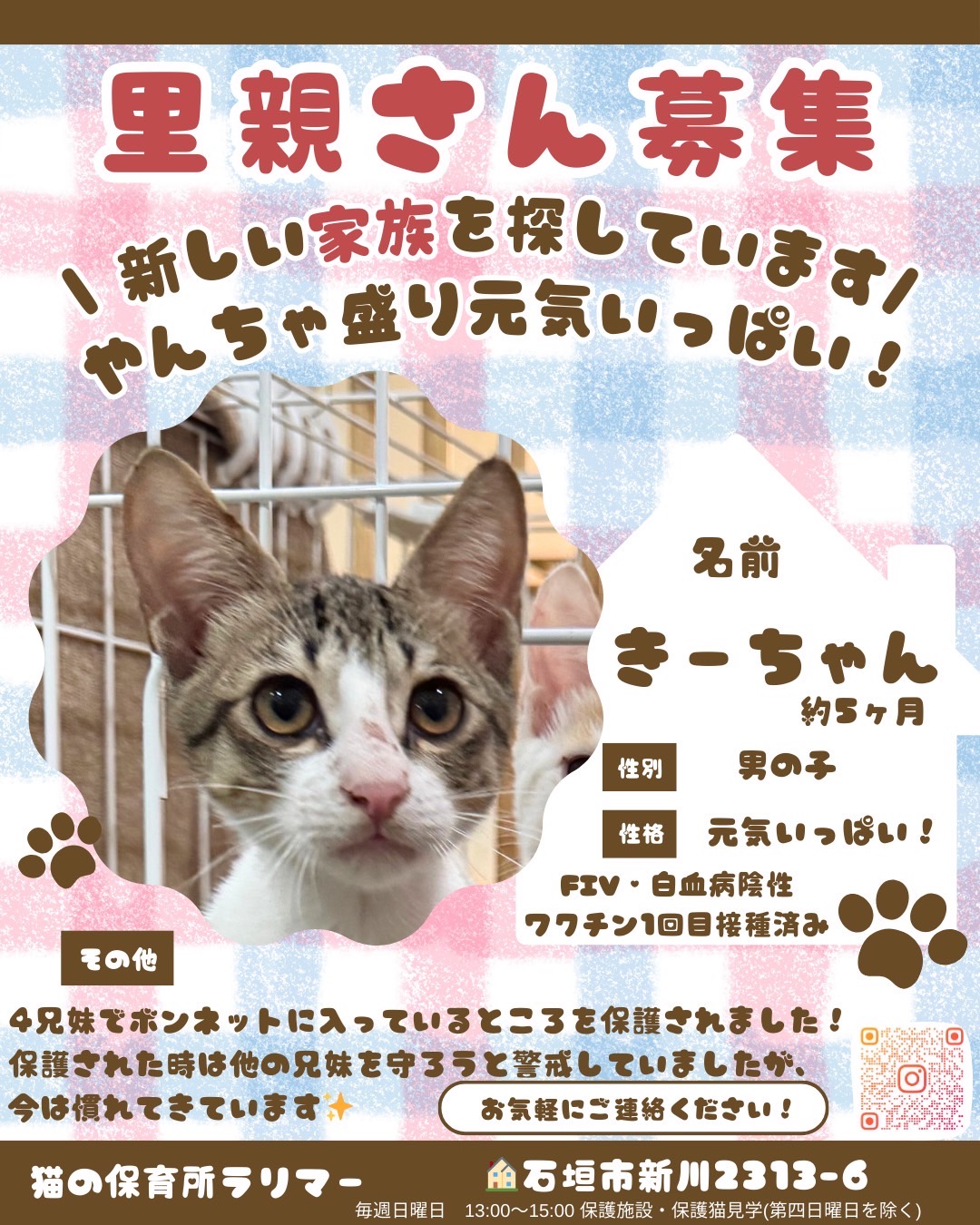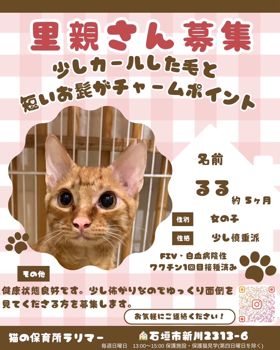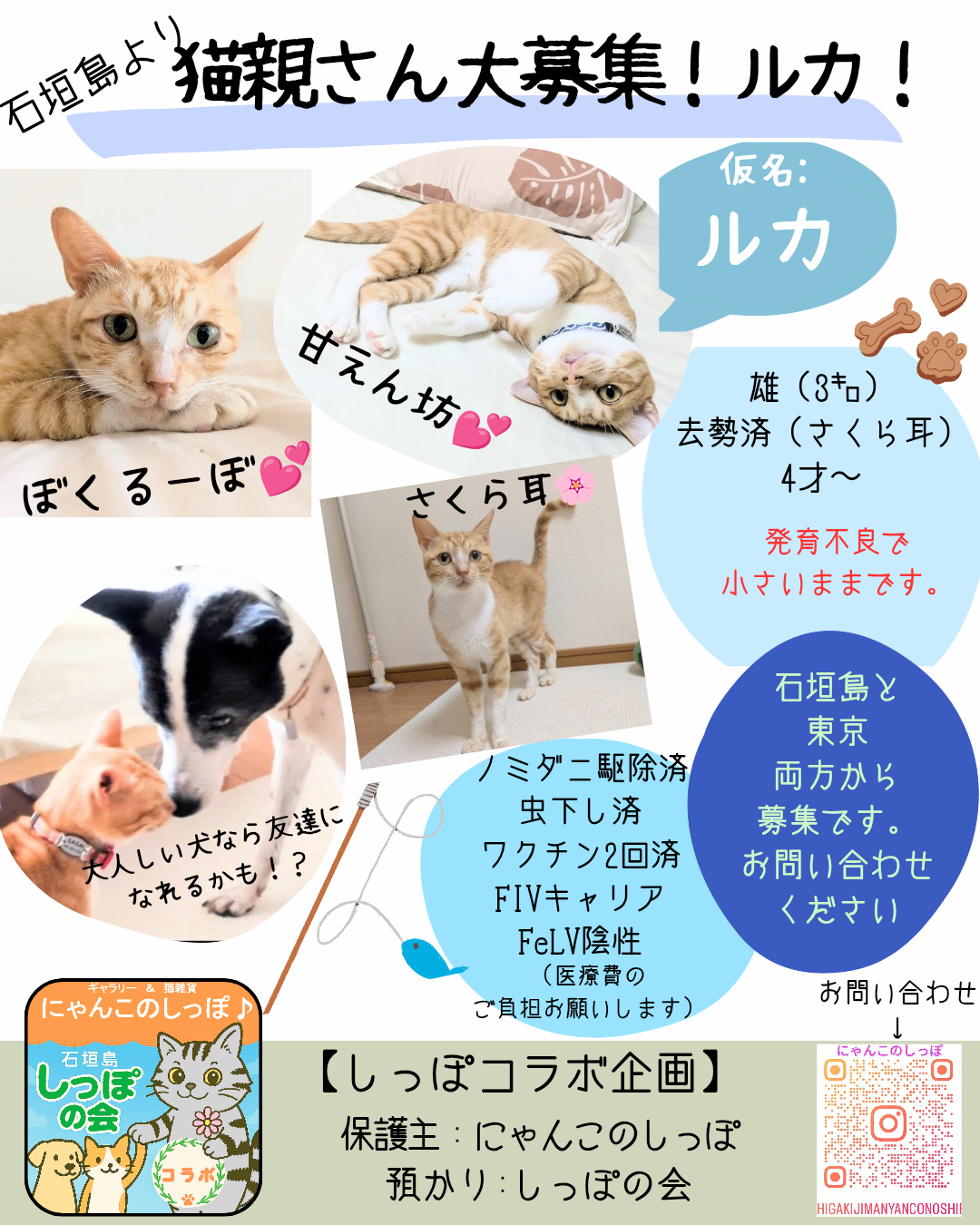 猫ちゃんの譲渡会は、日曜日にラリマーさんの方でやっていますので、是非そちらにも足を運んでください!