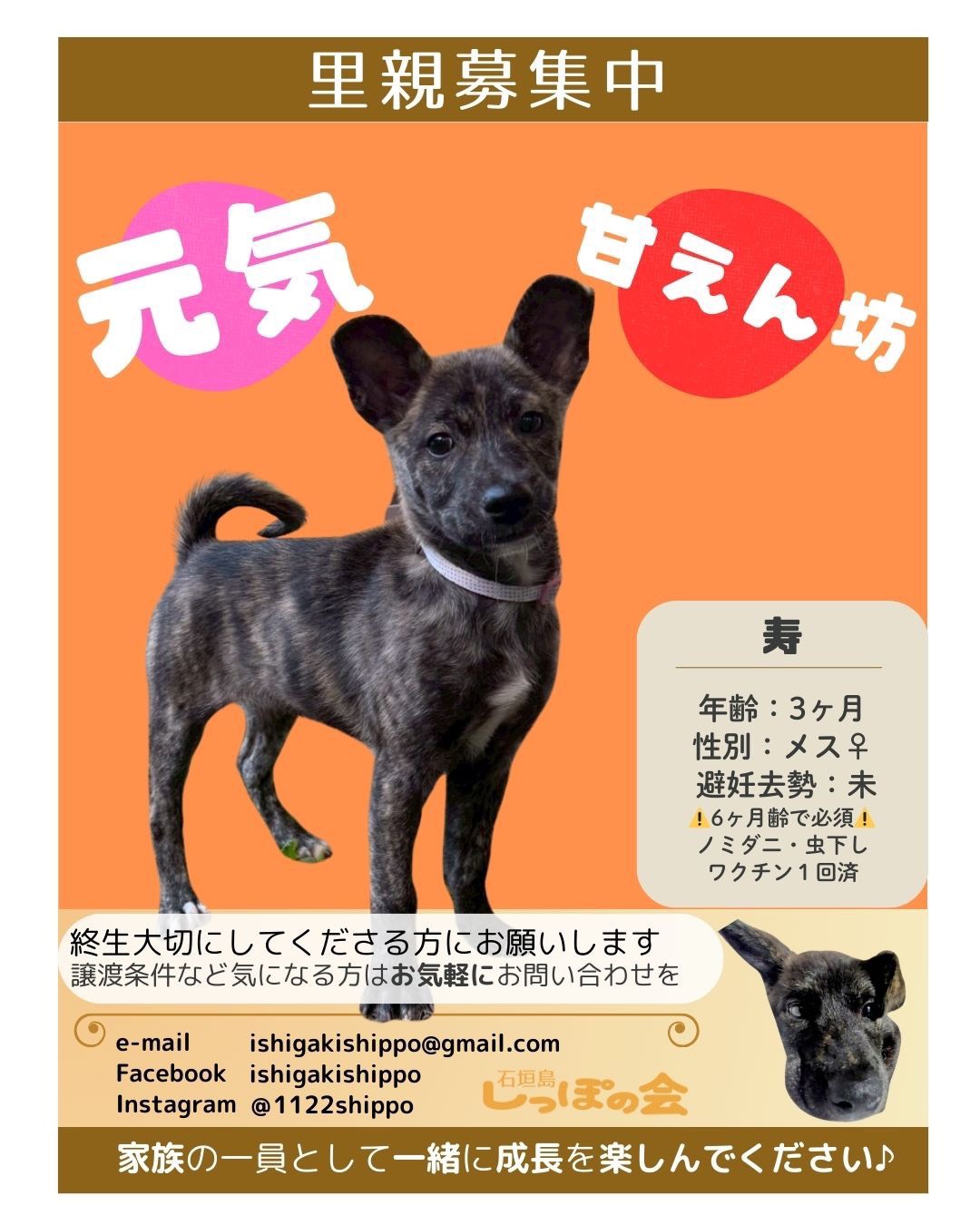 個人保護主さんより、お問い合わせはチラシの連絡先へ